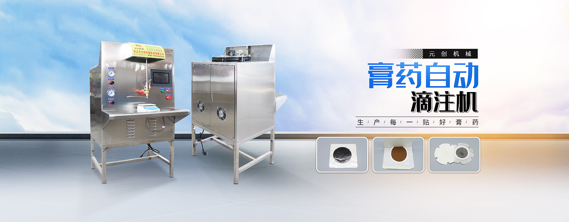 元創機械制造膏藥機廠家已涵蓋:小型滴注機、自動滴注成型一體機、藥貼基質涂布機、自動貼片機、自動包裝機,以及非標藥貼設備等20多個產品類型,規劃為滴注系列、涂布系列、貼片系列、非標藥貼四大系列產品。